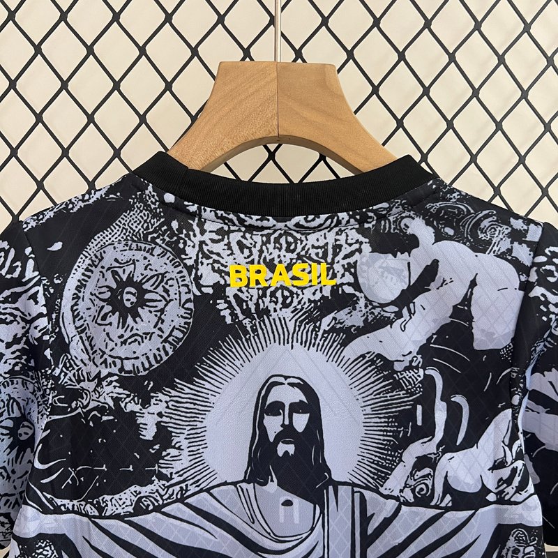 24-25 Brazil Black Grey Special Edition Kids Soccer Jersey *Jesus Grey Black - Image 10