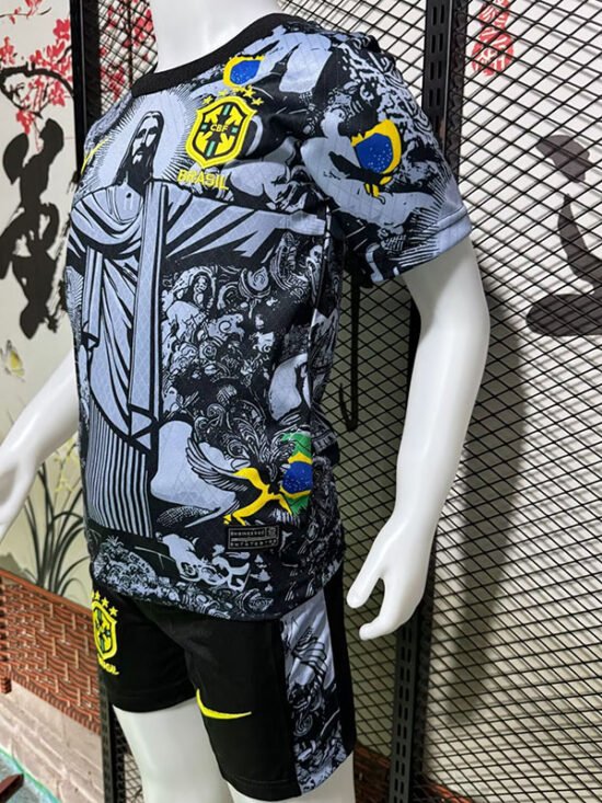 24-25 Brazil Black Grey Special Edition Kids Soccer Jersey *Jesus Grey Black - Image 4