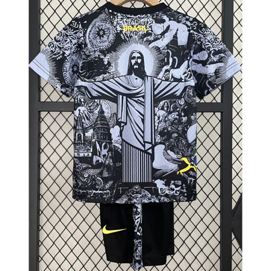 24-25 Brazil Black Grey Special Edition Kids Soccer Jersey *Jesus Grey Black - Image 2
