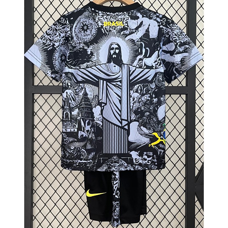 24-25 Brazil Black Grey Special Edition Kids Soccer Jersey *Jesus Grey Black