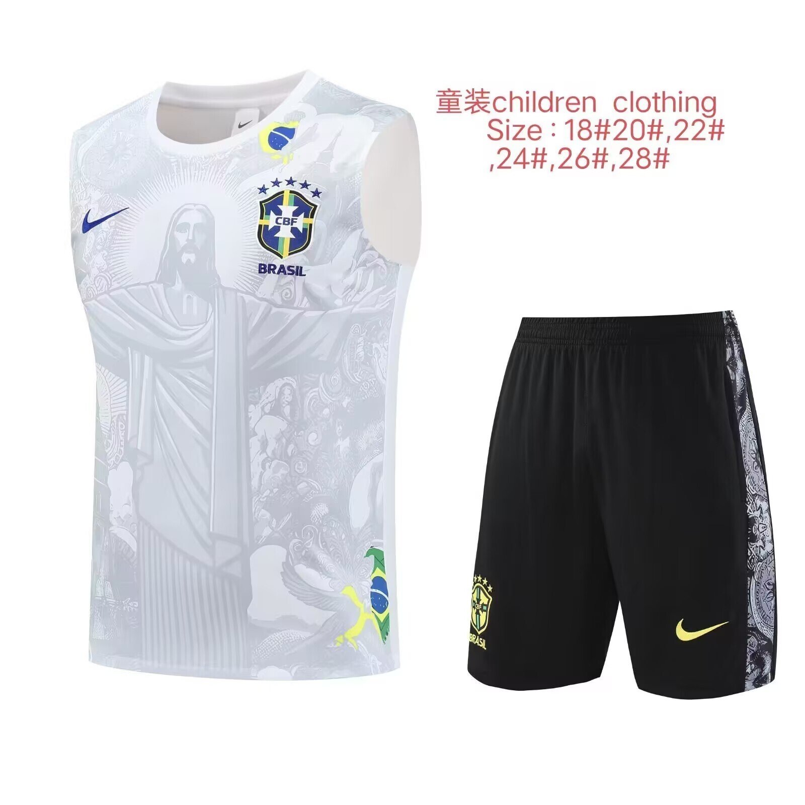 25-26 Brazil White Kids Tank Top and Shorts Suit *Jesus White